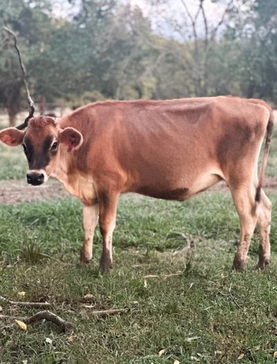 Registered A2A2 Jersey Heifer. She is bred to our homozygous polled Jersey bull and is expected to calve in Late May. She was born in our farm and easy going. She will make a great family milk cow very soon!